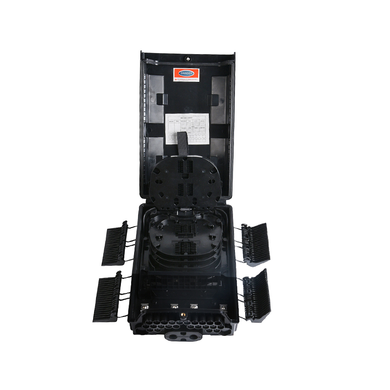 GSG-FDB-24B fiberoptisk distributionslåda har ventilationsöppningar på botten för att säkerställa fri luftcirkulation. Denna funktion hjälper till att upprätthålla optimal driftstemperatur, förhindrar överhettning och säkerställer livslängden för interna komponenter. Korrekt temperaturkontroll är avgörande för tillförlitlig prestanda hos fiberoptiska system.